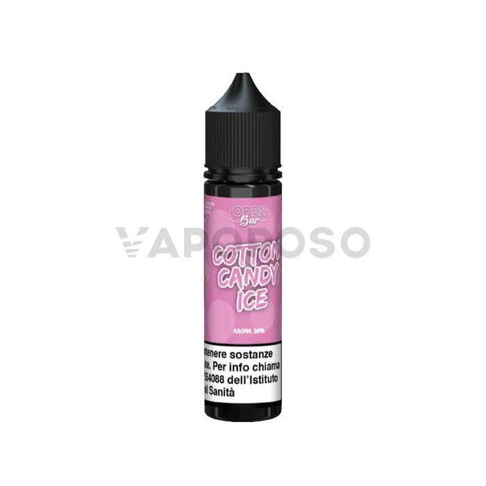 Cotton Candy Ice Open Bar Aroma Shot 20ml a base di glicole propilenico, contenuto 20ml/gr in flacone da 60ml da diluire.