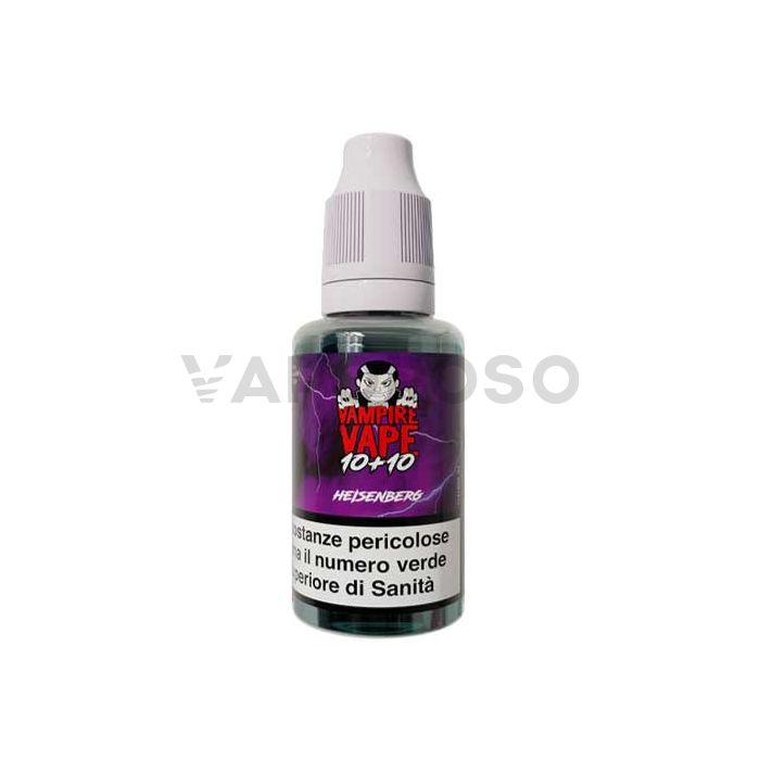 Vampire Vape Heisenberg è un aroma shot per sigarette elettroniche, prodotto da Vampire Vape nel Regno Unito, un brand autorevole e conosciuto a livello globale nel'ambito dello svapo. Lo shot Heisenberg è un aroma appartenente alla tipologia dei Fruttati, Mentolati e Balsamici ed è a base di Menta Frutti rossi Anice.