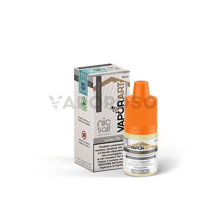 Vaporart Nic Salt Tobacco Gold è un liquido per sigaretta elettronica prodotto in Italia al gusto di tabacco secco.