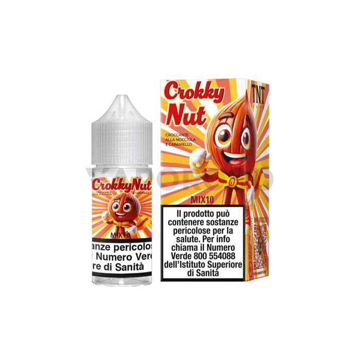Crokky Nut TNT Vape Liquido Mix and Vape 10ml per sigaretta elettronica prodotto da TNT Vape in Italia, l'aroma mix Crokky Nut è della famiglia aromatica Cremosi.