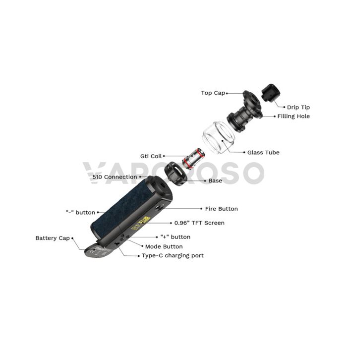 Lo schermo principale a colori TFT da 0,96 pollici permette di evincere le principali impostazioni del dispositivo e di personalizzare le modalità di svapo in base alle proprie esigenze.